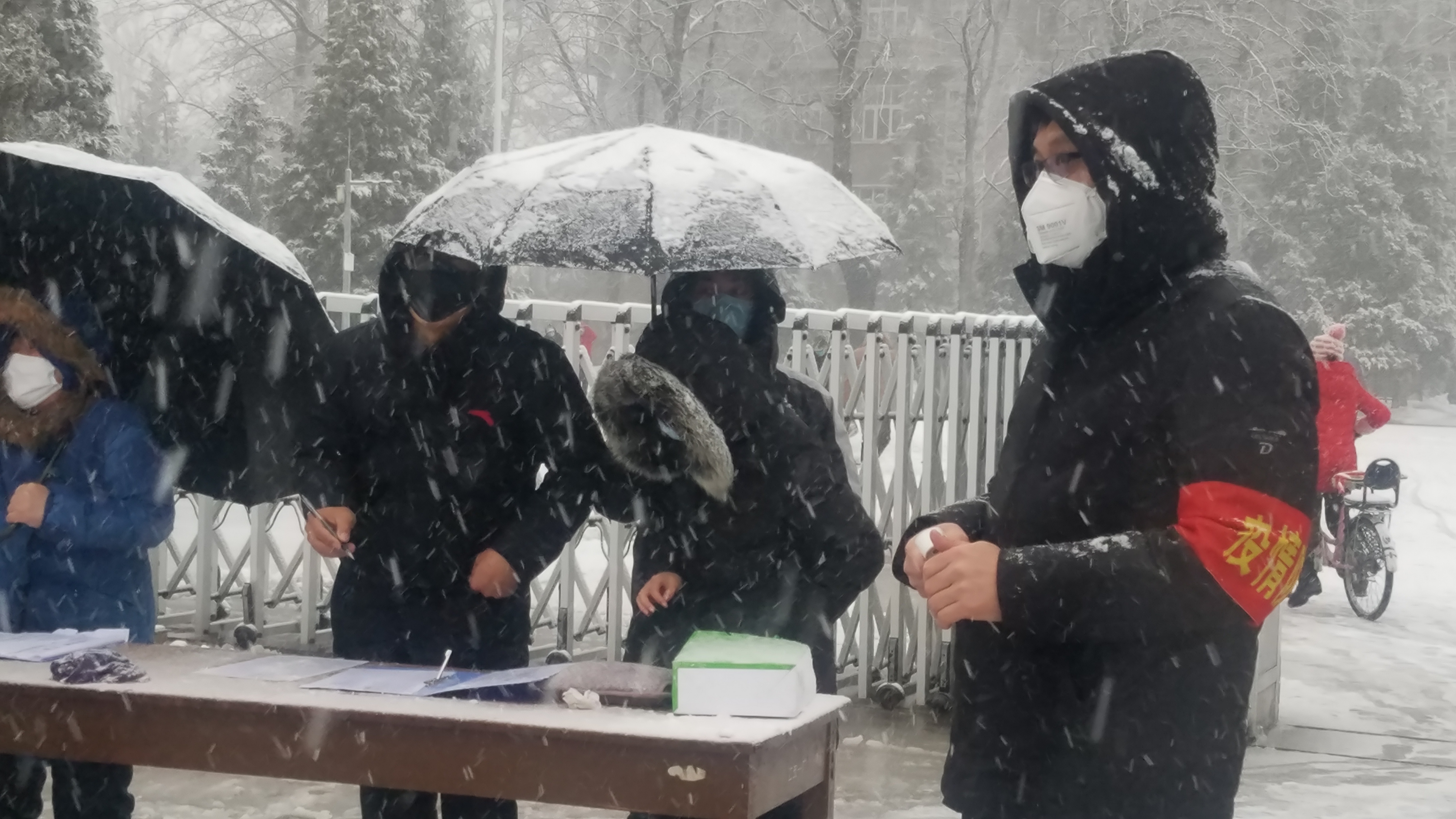 - 2月14日,一場雪雨突如其來,北風伴著春雨,低溫連著雨雪,天地瞬間變成銀裝素裹,面對氣溫驟降、雪雨交加的惡劣天氣,北玻院廠區(qū)疫情防控點的黨員干部不畏雪雨,依然同往常一樣堅守崗位,嚴防嚴控,認真有序對單位員工進行上崗前測溫與登記,筑牢織密疫情防控網,雪雨淋濕了他們的衣裳,毫無顧忌,他們說,防控就是責任,身為一名黨員,關鍵時刻我們要走在疫情防控的最前沿,不管天氣有多惡劣,我們一定值好班、站好崗,把好關。初心在風雪中堅守,使命在嚴寒中擔當,他們沒有別的奢求,只希望用自己的努力守護著員工的安康。此時此刻,望著他們迎雪雨、戰(zhàn)嚴寒、嚴排查的身影,頓生敬意與感動,他們就是雪雨中防控疫情最美的風景線,有他們的堅守、奉獻與擔當,北玻院一定能打贏疫情防控阻擊戰(zhàn)。