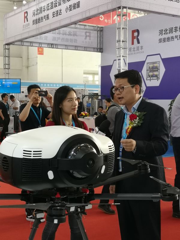 本次展會成都有限配套韓國斗山首次在國內展出無人機及氫氣瓶系統,此款產品是專門針對工業巡航市場研發,一經推出就受到市場的廣泛關注,目前與韓國斗山集團達成戰略合作協議,已經實現批量供貨。新產品的優勢在于,與傳統鋰電池續航時間20-30分鐘相比,氫燃料電池的續航時間可以達到2-3個小時,滿足絕大部分客戶的需求。氫燃料無人機的亮相也吸引了央視記者關注,在展會現場對銷售總監李樺圣進行專門采訪。